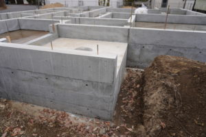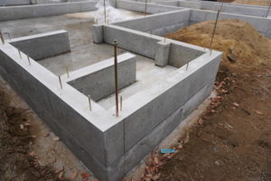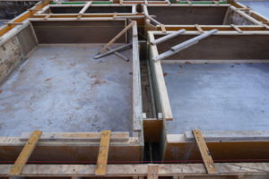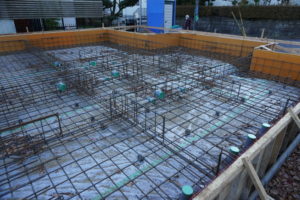 基礎工事です。コンクリートは2回流し込み作業をします。1度目のコンクリートが乾くには、2週間程度かかるとのこと。なので2週間放置です。